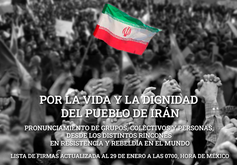 • POR LA VIDA Y LA DIGNIDAD DEL PUEBLO DE IRÁN. Pronunciamiento de grupos, colectivos y personas, desde los distintos rincones en resistencia y rebeldía en el mundo.POR LA VIDA Y LA DIGNIDAD DEL PUEBLO DE IRÁN. Pronunciamiento de grupos, colectivos y personas, desde los distintos rincones en resistencia y rebeldía en el mundo.