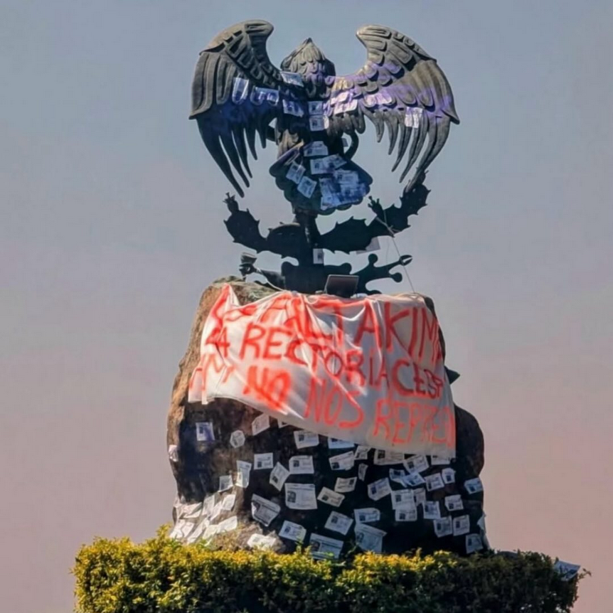 La tarde del mismo 8 de marzo, una patrulla de la Policía Municipal hostigó e intimidó a la comunidad estudiantil que se encuentra sosteniendo el legítimo paro de la Facultad de Nutrición. Los elementos de la Policía Municipal se pararon afuera de la reja principal de la Facultad portando armas de fuego.